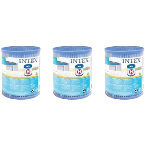 Cartouches de filtration H vendues en lot de 3, 6 ou 12.Les cartouches de filtration de type H sont compatibles avec l’Ă©purateur Ă cartouche 1,25 mÂł/h de la marque Intex.Elles sont indispensables pour la filtration de votre piscine. Facilement nettoyage, nous vous conseillons de la nettoyer 2 fois par semaine et d’alterner l’utilisation de 2 cartouches pour prolonger leur durĂ©e de vie.Matière : fibre dacron