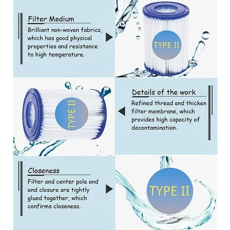 Filtre de piscine type 2 : convient pour les purificateurs à cartouche de type II pour Bestway 58094,58148,58117, SPA, remplacement pour filtre de nettoyage de piscine.
