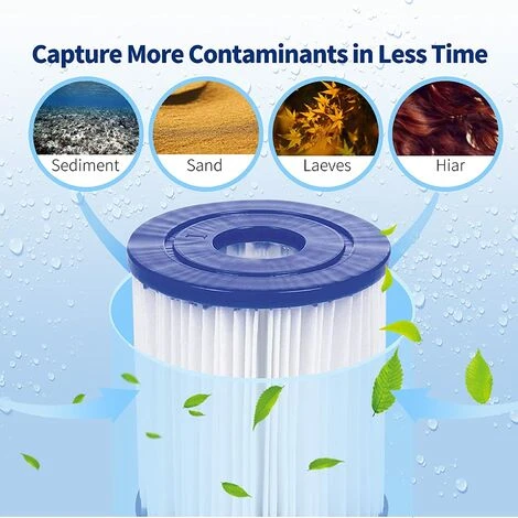 【Filtration efficace】: la cartouche filtrante est le cœur du système de filtration et assure que l’eau de votre piscine reste claire et propre aussi bien sur la surface que sur le sol. L’utilisation d’éléments filtrants à haute efficacité avec d’excellents résultats de filtration vous offrira une excellente expérience de filtration.