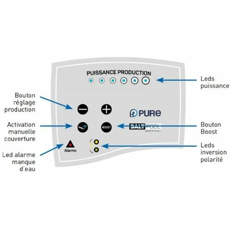 Électrolyseur au sel Bio-Pool Salt Pool 15, pour piscine jusqu’à 60 m3.Excellent rapport qualité/prixConçu et fabriqué en FranceInversion de polarité automatiqueProduction : 15 gr/hFonction « volet roulant »Garantie : 2 ans