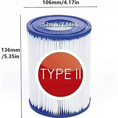??????Cartouches Filtrantes dTaille II pour Bestway: : Ce filtre est spécialement con?u pour Bestway II. Dimensions du filtre de piscine: environ diamètre extérieur 4.17 pouces/106 mm, diamètre intérieur 2.04 pouces/52 mm, hauteur 5.35 pouces/136 mm, veuillez confirmer le modèle de pompe avant l’achat.