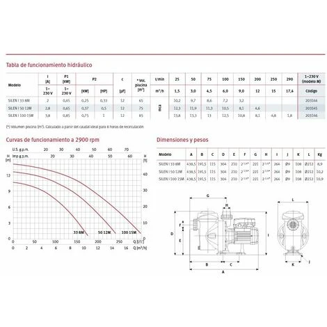 Nouvelle série SILEN I 33 8M, auto-amorçante à 4 mètres et ultra-silencieuse. Corps de pompe, pied, roue, support de joint et diffuseur en polypropylène. Arbre moteur en acier inoxydable AISI 431. Garniture mécanique spéciale en AISI 316. Boîtier du moteur en aluminium. Joints et roulements en NBR jusqu’à 160 ºC.