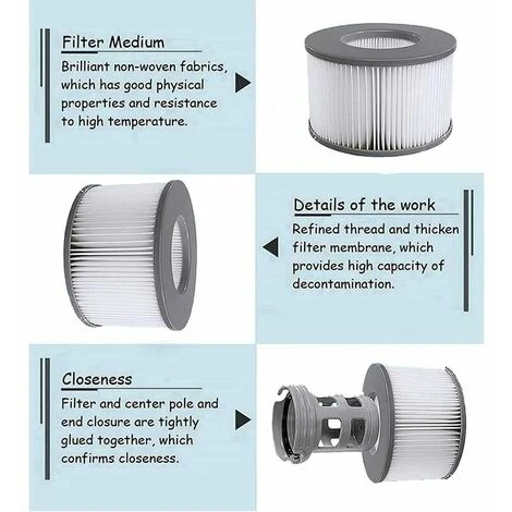 - 3.Dimensions : 11 x 8 cm, la tige centrale et le capuchon sont collés ensemble pour assurer une meilleure étanchéité de l’extrémité,Durable et pratique,Le filtre est l’un des systèmes de filtration les plus efficaces pour les jacuzzis gonflables avec 90 lamelles et une surface de 4 000 cm².