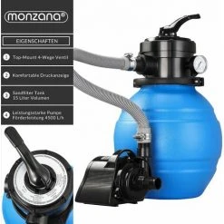 Groupe de filtration à sable SX925 2 m³/h – IntexCe groupe de filtration Intex est spécialement conçu pour les petits bassins d’un volume de 17 m³. Cette filtration à sable de 2 m³/h est efficace pour assurer une eau de qualité et agréable pour les baigneurs.Pour les commandes, rien de plus simple avec son panneau digital et son programmateur intégré. Facile à prendre en main, ce groupe de filtration Intex pour petites piscines possède une vanne 4 voies pour toutes les fonctions de filtration :