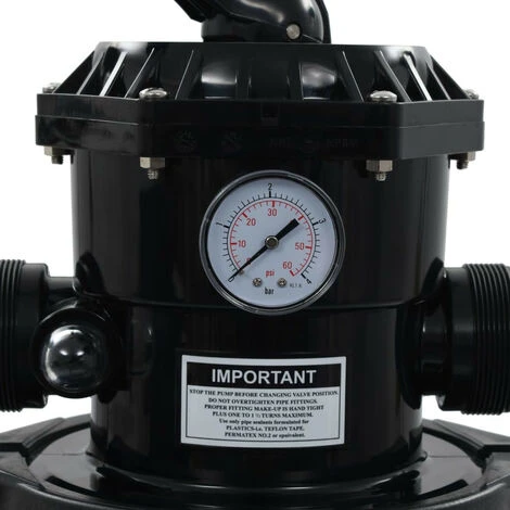 Fabriqué en polyéthylène haute densité, le filtre à sable est hautement durable. Ce filtre est conçu pour atteindre un débit de 12 m³ / h. La pression de service maximale est de 50 PSI. Pour démarrer l’opération, 160 kg de sable filtrant (non inclus) sont nécessaires. Le filtre est équipé d’une vanne multivoie à 6 positions : filtre (pour filtrer l’eau), lavage à contre-courant ((pour nettoyer le milieu filtrant), rinçage (pour rincer le système de filtration), hiver (pour l’hiver), recirculation (pour éviter le filtre de la piscine) et fermeture (pour arrêter tout écoulement d’eau au filtre). Ce filtre à sable convient parfaitement aux pompes de piscine de 1 CV. Remarque : Elle peut être raccordée avec des tuyaux de diamètre de 32 mm et de diamètre de 38 mm.Couleur : bleuMatériau : PEDimensions : 66 x 112 cm (Diamètre x H)Taille de la connexion : 48 mm (1 1/2′)Zone de filtration : 0,34 m² (3,68 pi²)Débit : 12 m³ / h (4320 GPH)Pression de service maximale : 50 PSISable filtrant nécessaire : 160 kg (non compris)Vanne multi-voies à 6 positions : filtrer, laver à contre-courant, rincer, hiverner, recirculer et fermer.Convient à la connexion à une pompe de 1 CVArticle convient aux tuyaux d’un diamètre de 32 mm ou de 38 Nous ne livrons pas en Corse.
