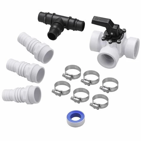 Pour les 3 adaptateurs ABS, vous pouvez utiliser des tuyaux de piscine de 1,25″ (Ø 32 mm) à 1,5″ (Ø 38 mm). Pour la vanne 3 voies, vous pouvez connecter des tuyaux de piscine de 1,5″ (Ø 38 mm).
