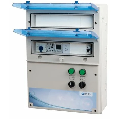 Ce coffret est destiné à alimenter votre pompe de filtration. Une horloge électronique programmable permet de définir le fonctionnement de la pompe de filtration sur différentes plages horaires. Ce coffret est muni d’un module Wifi permettant à distance de commander et de programmer le fonctionnement de la pompe de filtration via une application « Tuya Smart », application gratuite.