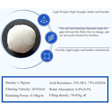 Les billes filtrantes sont plus faciles à ajouter ou à remplacer que le sable filtrant. La boule filtrante de piscine peut non seulement filtrer les particules de saleté aussi petites que 1 micron, mais également filtrer l’huile dans l’eau et a une forte capacité d’adsorption.