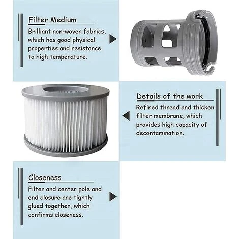 【élimination des impuretés】La cartouche filtrante est installée dans la pompe de filtration et capture la poussière pendant qu’elle passe à travers le système. Empêche la poussière de pénétrer dans la pompe et le chauffage et prolonge sa durée de vie.